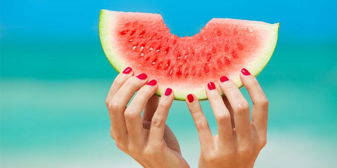 στικ καρότου, αγγουριού και σέλινου και συνδυάστε τα με δύο κουταλιές της σούπας χούμους (50 θερμίδες).Καρπούζι